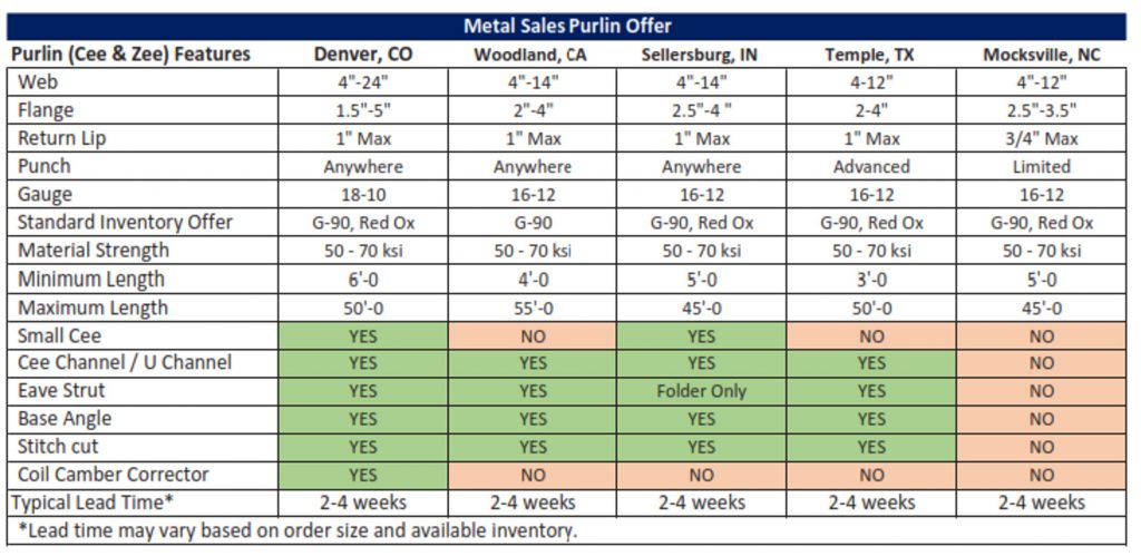 Sellersburg, IN – Metal Sales, a leading supplier of metal construction products, has announced their new purlin mill at the company’s Denver facility is fully operational and producing high quality secondary structural products.