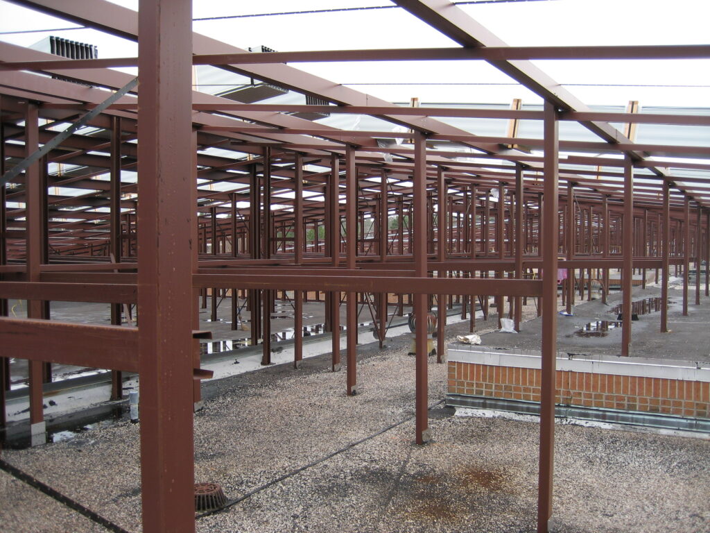 With a Retro-Master retrofit, new steel framing is installed over the failing flat roof, then it is clad with long-lasting and energy-efficient metal roofing. Retro-Master is able to accommodate all types of structural framing on existent buildings, such as steel, concrete, and wood. Property owners can choose from a low-slope design to subtly upgrade the look their building or go with a steep slope option, to create a more dramatic makeover.