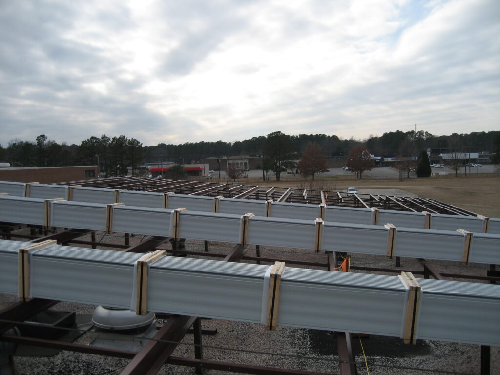 Retro-Master provides everything you will need to retrofit your existing roof based on your needs, such as structural post-purlin framing, sub-framing, along with your new metal roof. If needed, steel posts or sub-purlins, will be installed first to form the structure for your new sloped metal roof. Metal Sales roof panels and accessories are then installed to complete the job. You are left with a new, high-quality Retro-Master roof.